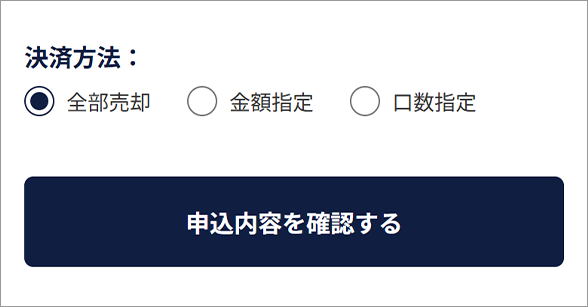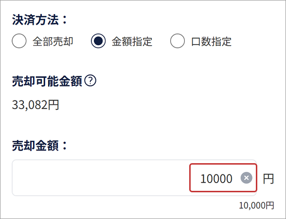 「金額指定」で売却する場合は、売却金額を入力する。