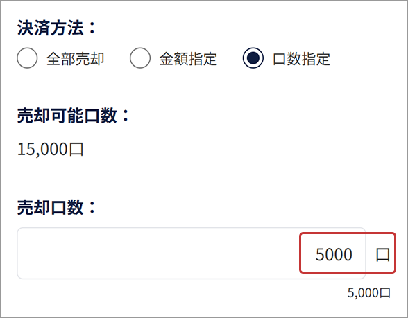 「口数指定」で売却する場合は、売却口数を入力する。